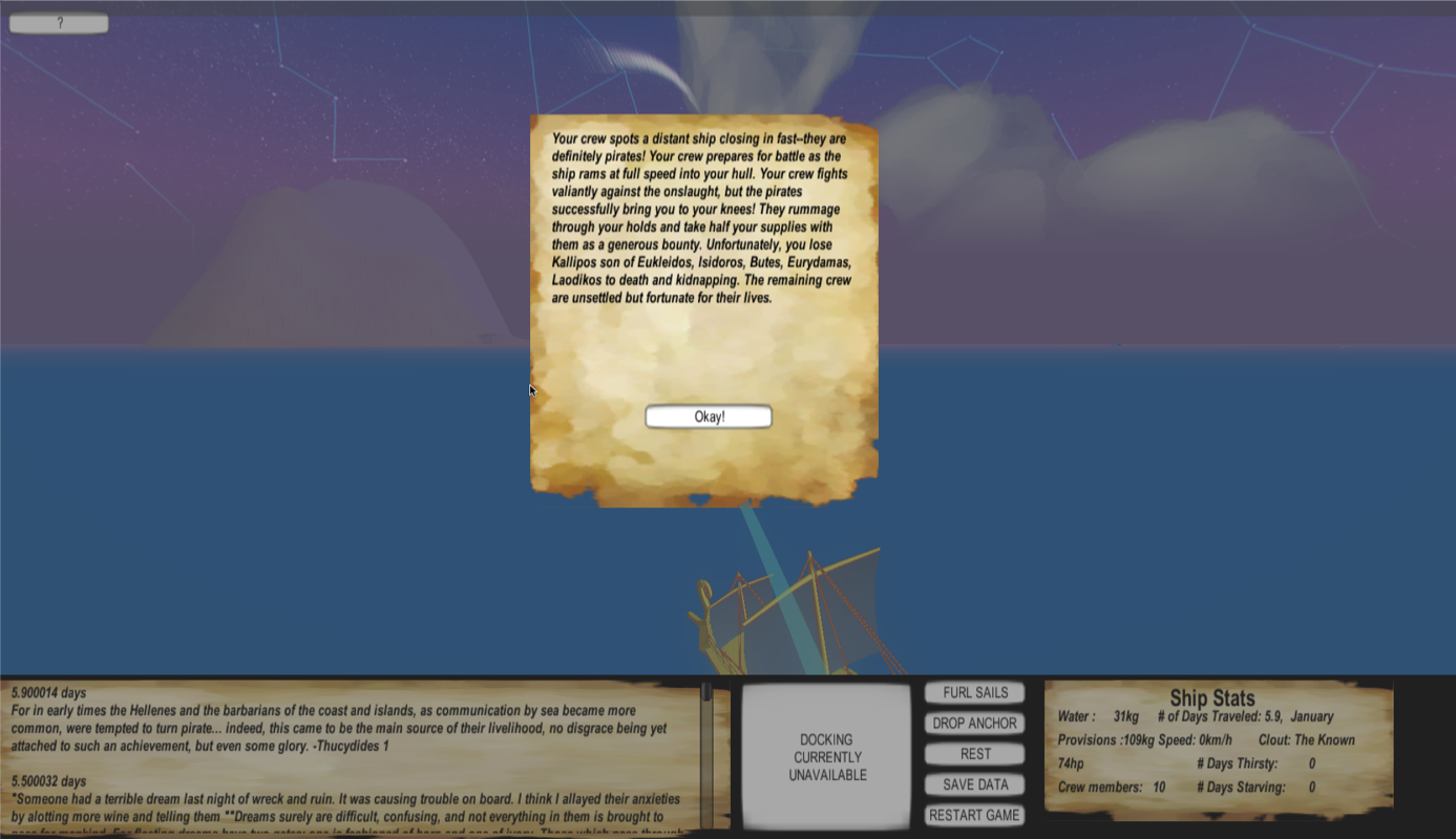 Maritime safety in the ancient Greek world was created through symbols and social practice as well as the science of seafaring. The human connections forged through ritual, myth and image enabled communication and granted authority to the civic institutions that offered legal and economic benefits. A gaming application offers a route to modelling the triangulation of seascapes, civic institutions, and narratives through which people and goods moved around the ancient Mediterranean. The game was inspired by the promise of maritime safety given to initiates into the mystery cult of the Great Gods of Samothrace, where grants of proxenia and theoria represent the civic counterparts of mystic promises and tales of supernatural intervention. The flexibility that characterizes ancient proxenia recommends the framework of a game; the bridge between imagination and strategic outcomes that characterizes serious games maps onto the ancient realities of the maritime success enabled through ritualDownloads